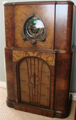 1939 Zenith 12s370 is pictured here. Big Bertha is the given name by collectors. This was Zenith first year for automatic push button tuning. Coin named "Radiorgan". Zenith claimed 64 tone variation from the push-pull tone control. Notably one of the best sounding radios in my collection. Zenith did a great job in producing, number one, a great sounding radio for 1939 and installing in a cabinet that resonates the sound to perfection. SOLD!